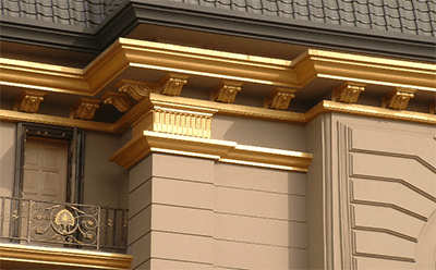 GRC構件原則上照比石板安裝的方式來安裝,但不需要掛件(構件內已經預埋掛筋)也只能采用焊接方式來安裝。EPS構件重量很輕,抗力較強,一般采用專用膠粘的方式來固定。
