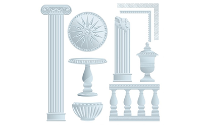 GRC構件中羅馬的古典柱式包括希臘時期的3種,共有5種:多立克式、愛奧尼克式、科林斯式、羅馬式(塔司干式、復合式)。