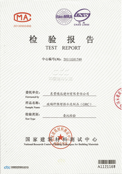 GRC建筑材料檢測(cè)報(bào)告